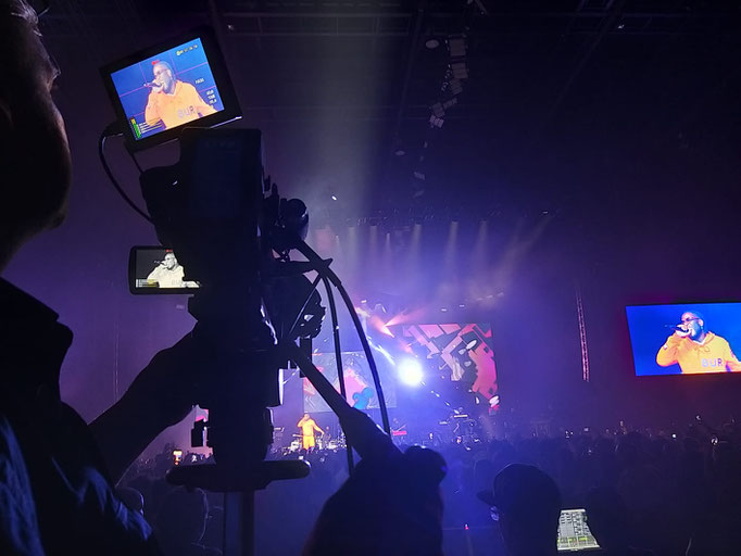 Met onze speciale 'concert-videosetup' (met speciale statieven, 7 camera's en grote regie voor het schakelen op meerdere schermen tegelijk) en ons gepassioneerde video-superteam (echte helden!), reizen we een aantal maanden per jaar door heel Europa voor prachtige live beelden op de schermen bij concerten in arena's tot 15.000 man – van Londen tot Zürich, van O2 tot Uber Arena. Soms rijden we 800 kilometer per dag!
