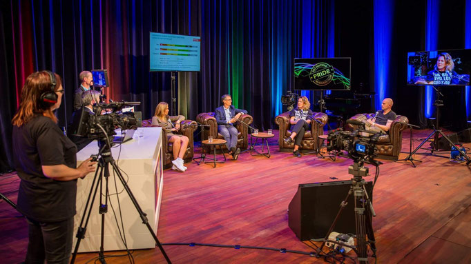 Of het nu een kleiner webinar is live vanuit uw bedrijf, of een grotere 'hybride' (dus ook live online) theaterpresentatie voor publiek, met professionele sprekers: door onze grote ervaring weten